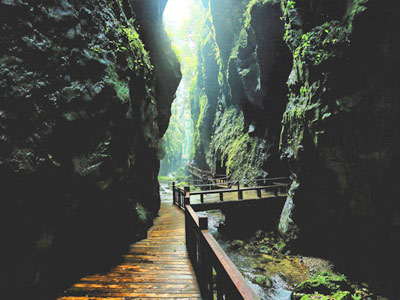張家界朝陽地縫景區(qū)地處慈利縣朝陽境內(nèi),全長5公里,垂直深度近200米。朝陽地縫為趙家埡庫區(qū)流水經(jīng)幾億年沖刷而形成的100多米深的崖縫,兩崖最窄處僅一米多寬,景色集奇、秀、險(xiǎn)、野、幽于一體。景區(qū)內(nèi)溪水清澈,空氣清新,冬暖夏涼,四季如春,是旅游觀光、避暑休閑、考察探險(xiǎn)的好去處。